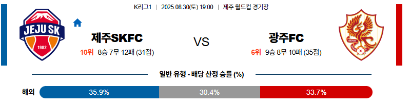제주 대 광주 K리그1 08월30일 맞대결 생중계, 스포츠중계, 스포츠분석