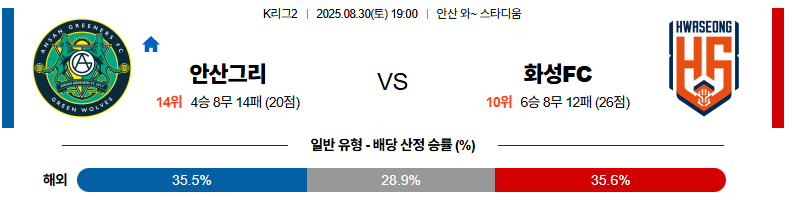 안산 대 화성 K리그2 08월30일 맞대결 생중계, 스포츠중계, 스포츠분석