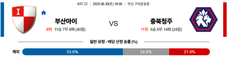 부산 대 충북청주 K리그2 08월30일 맞대결 생중계, 스포츠중계, 스포츠분석
