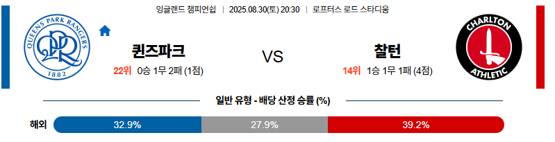 QPR 대 찰튼 잉글랜드챔피언쉽 08월30일 맞대결 생중계, 스포츠중계, 스포츠분석