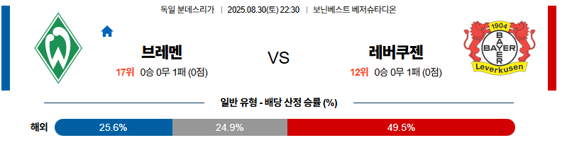 브레멘 대 레버쿠젠 분데스리가 08월30일 맞대결 생중계, 스포츠중계, 스포츠분석