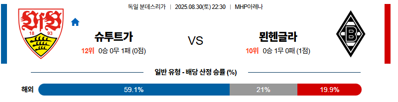 슈투트가르트 대 글라트바흐 분데스리가 08월30일 맞대결 생중계, 스포츠중계, 스포츠분석