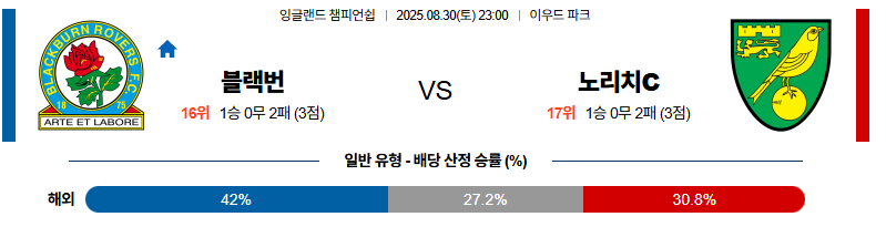 블랙번 대 노리치시티 잉글랜드챔피언쉽 08월30일 맞대결 생중계, 스포츠중계, 스포츠분석