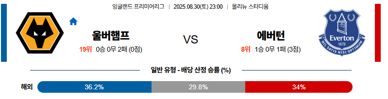 울버햄튼 대 에버튼 프리미어리그 08월30일 맞대결 생중계, 스포츠중계, 스포츠분석