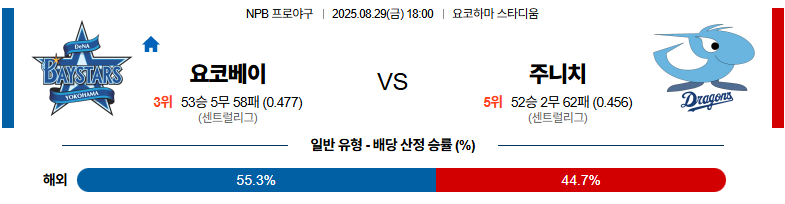 요코하마 대 주니치 NPB 08월29일 맞대결 생중계, 스포츠중계, 스포츠분석