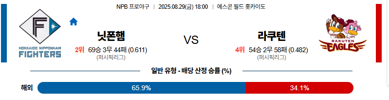 니혼햄 대 라쿠텐 NPB 08월29일 맞대결 생중계, 스포츠중계, 스포츠분석