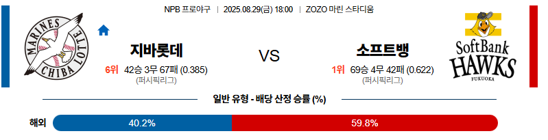 지바롯데 대 소프트뱅크 NPB 08월29일 맞대결 생중계, 스포츠중계, 스포츠분석