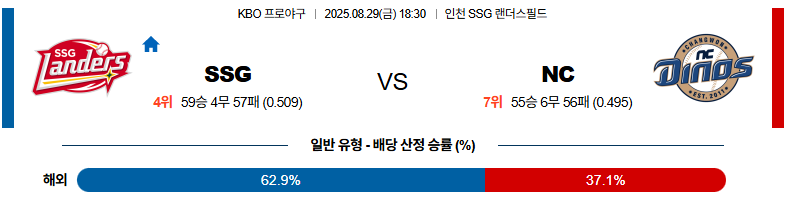 SSG 대 NC KBO 08월29일 맞대결 생중계, 스포츠중계, 스포츠분석