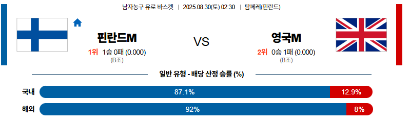 핀란드 대 영국 유로바스켓 08월30일 맞대결 생중계, 스포츠중계, 스포츠분석