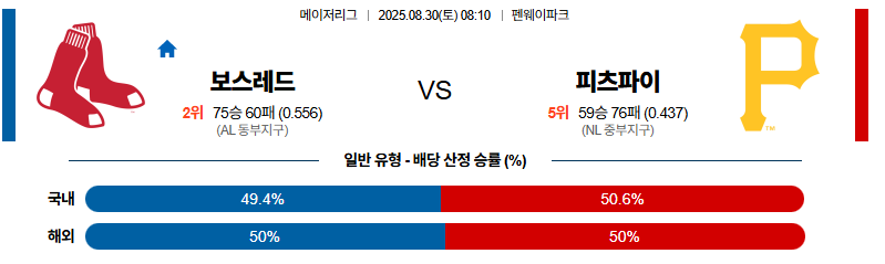 보스턴 대 피츠버그 MLB 08월30일 맞대결 생중계, 스포츠중계, 스포츠분석