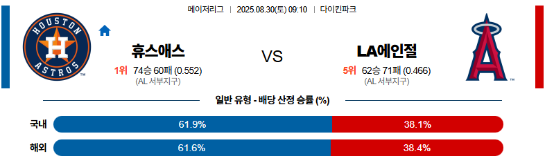 휴스턴 대 LA에인절스 MLB 08월30일 맞대결 생중계, 스포츠중계, 스포츠분석