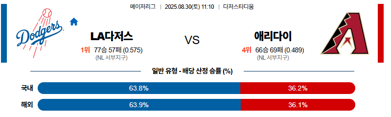 LA다저스 대 애리조나 MLB 08월30일 맞대결 생중계, 스포츠중계, 스포츠분석