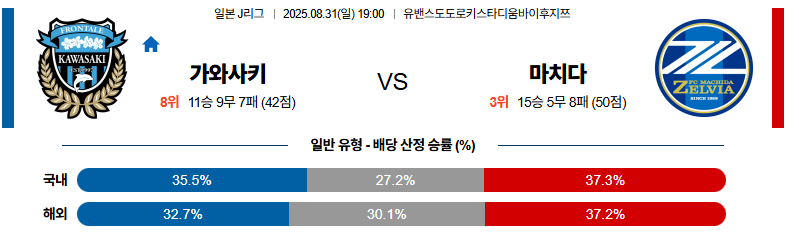 가와사키 대 마치다 J리그1 08월31일 맞대결 생중계, 스포츠중계, 스포츠분석