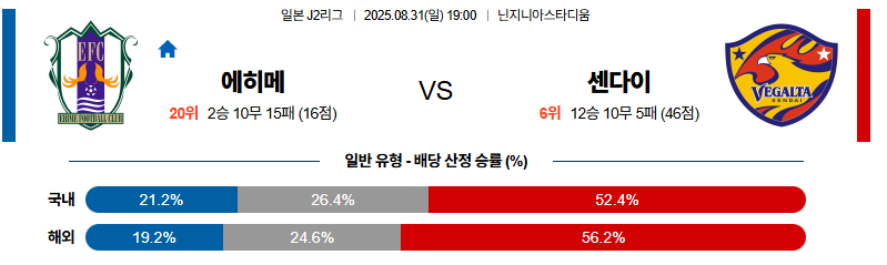 에히메 대 베갈타센다이 J리그2 08월31일 맞대결 생중계, 스포츠중계, 스포츠분석