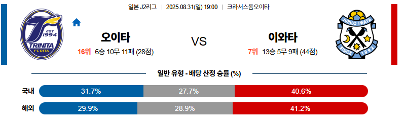 오이타 대 주빌로이와타 J리그2 08월31일 맞대결 생중계, 스포츠중계, 스포츠분석