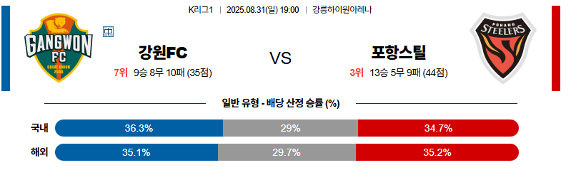 강원 대 포항 K리그1 08월31일 맞대결 생중계, 스포츠중계, 스포츠분석