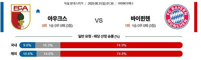 아우크스부르크 대 바이에른뮌헨 분데스리가 08월31일 맞대결 생중계, 스포츠중계, 스포츠분석