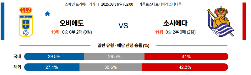 오비에도 대 소시에다드 라리가 08월31일 맞대결 생중계, 스포츠중계, 스포츠분석