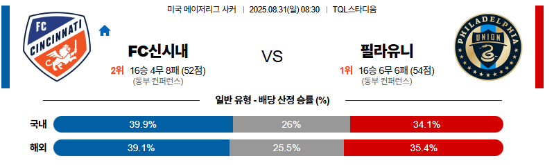신시내티 대 필라델피아 메이저리그사커 08월31일 맞대결 생중계, 스포츠중계, 스포츠분석