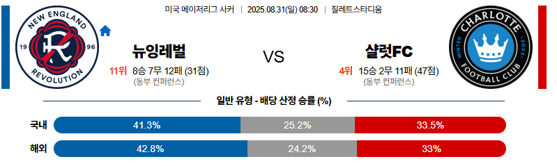 뉴잉글랜드 대 샬럿 메이저리그사커 08월31일 맞대결 생중계, 스포츠중계, 스포츠분석