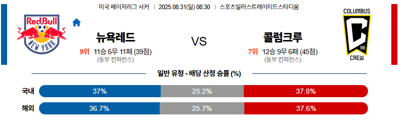 뉴욕레드불 대 콜럼버스 메이저리그사커 08월31일 맞대결 생중계, 스포츠중계, 스포츠분석
