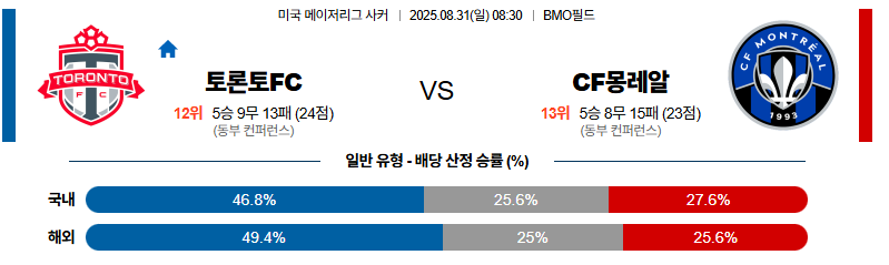 토론토 대 몽레알 메이저리그사커 08월31일 맞대결 생중계, 스포츠중계, 스포츠분석