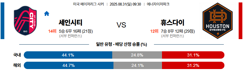 세인트루이스 대 휴스턴 메이저리그사커 08월31일 맞대결 생중계, 스포츠중계, 스포츠분석