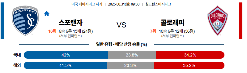 캔자스시티 대 콜로라도 메이저리그사커 08월31일 맞대결 생중계, 스포츠중계, 스포츠분석