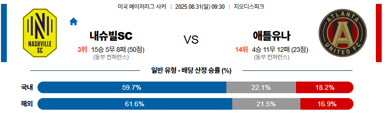 내슈빌 대 애틀랜타 메이저리그사커 08월31일 맞대결 생중계, 스포츠중계, 스포츠분석