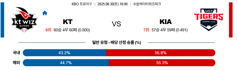 KT 대 KIA KBO 08월30일 맞대결 생중계, 스포츠중계, 스포츠분석