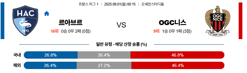 르아브르 대 니스 리그앙 09월01일 맞대결 생중계, 스포츠중계, 스포츠분석