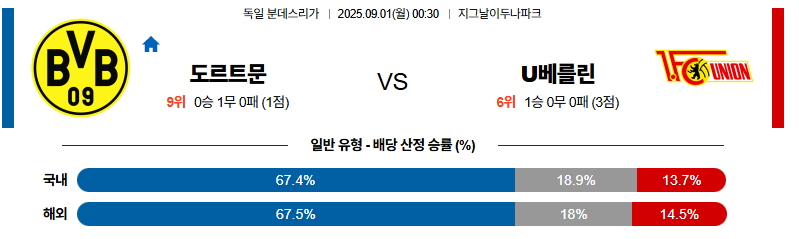도르트문트 대 우니온베를린 분데스리가 09월01일 맞대결 생중계, 스포츠중계, 스포츠분석