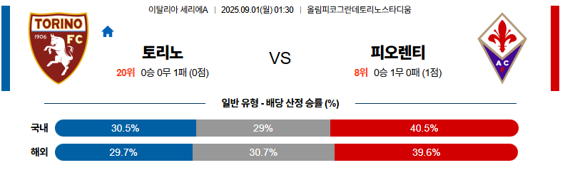 토리노 대 피오렌티나 세리에A 09월01일 맞대결 생중계, 스포츠중계, 스포츠분석