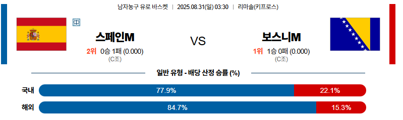 스페인 대 보스니아 유로바스켓 08월31일 맞대결 생중계, 스포츠중계, 스포츠분석