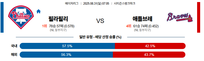 필라델피아 대 애틀랜타 MLB 08월31일 맞대결 생중계, 스포츠중계, 스포츠분석