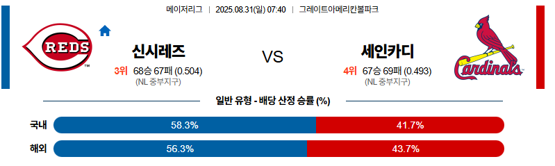 신시내티 대 세인트루이스 M08월31일MLB 08월31일 맞대결 생중계, 스포츠중계, 스포츠분석