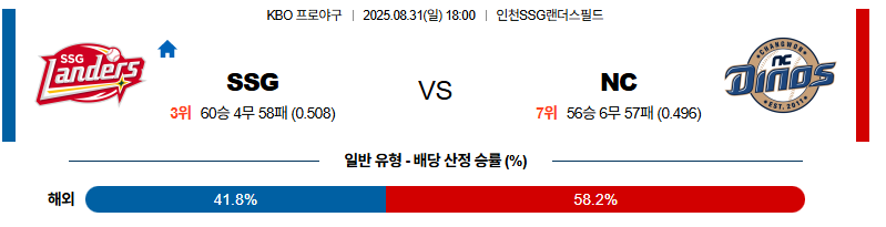 SSG 대 NC KBO 08월31일 맞대결 생중계, 스포츠중계, 스포츠분석