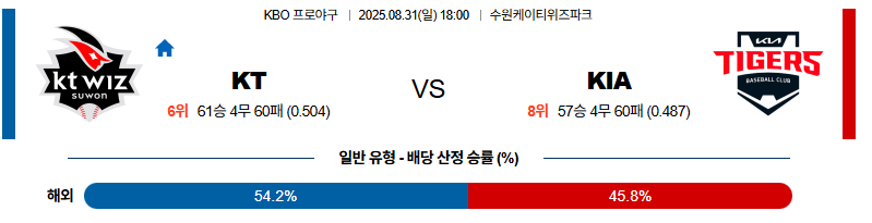 KT 대 KIA KBO 08월31일 맞대결 생중계, 스포츠중계, 스포츠분석