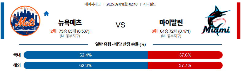 뉴욕메츠 대 마이애미 MLB 09월01일 맞대결 생중계, 스포츠중계, 스포츠분석