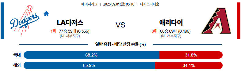 LA다저스 대 애리조나 MLB 09월01일 맞대결 생중계, 스포츠중계, 스포츠분석
