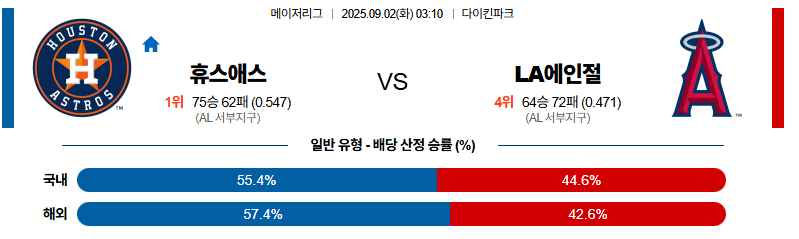 휴스턴 대 LA에인절스 MLB 09월02일 맞대결 생중계, 스포츠중계, 스포츠분석