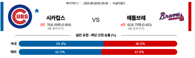 시카고컵스 대 애틀랜타 MLB 09월02일 맞대결 생중계, 스포츠중계, 스포츠분석