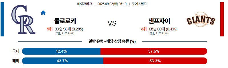 콜로라도 대 샌프란시스코 MLB 09월02일 맞대결 생중계, 스포츠중계, 스포츠분석