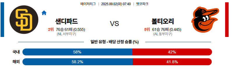 샌디에이고 대 볼티모어 MLB 09월02일 맞대결 생중계, 스포츠중계, 스포츠분석