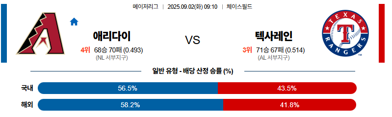 애리조나 대 텍사스 MLB 09월02일 맞대결 생중계, 스포츠중계, 스포츠분석