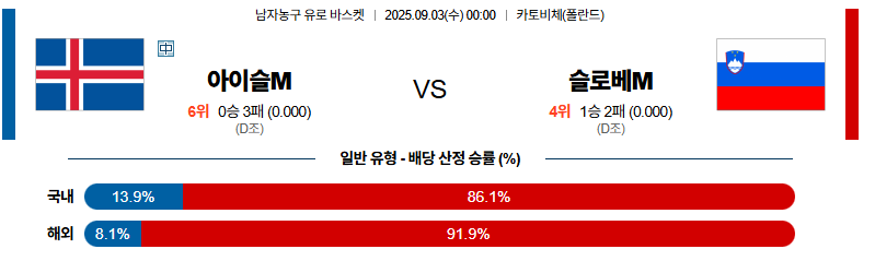 아이슬란드 대 슬로베니아 유로바스켓 09월03일 맞대결 생중계, 스포츠중계, 스포츠분석