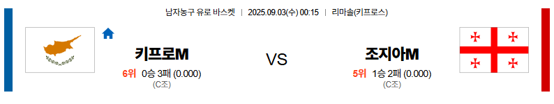 키프러스 대 조지아 유로바스켓 09월03일 맞대결 생중계, 스포츠중계, 스포츠분석