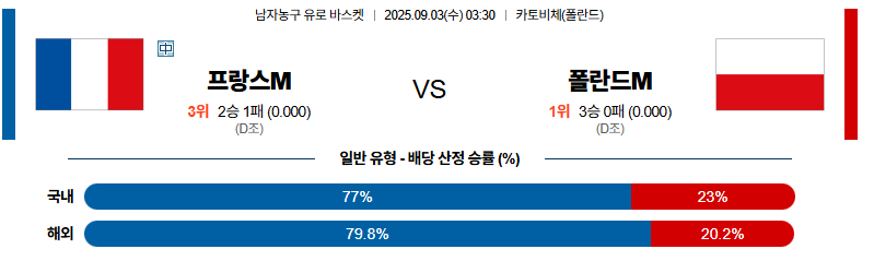 프랑스 대 폴란드 유로바스켓 09월03일 맞대결 생중계, 스포츠중계, 스포츠분석