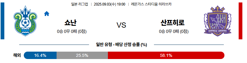 쇼난 대 산프레체히로시마 일본YBC르방컵 09월03일 맞대결 생중계, 스포츠중계, 스포츠분석