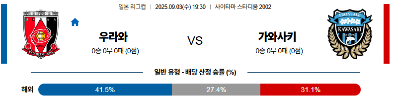 우라와 대 가와사키 일본YBC르방컵 09월03일 맞대결 생중계, 스포츠중계, 스포츠분석